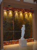 The ingenuity of this fountain goes beyond the attractive surface. In fact what might be most obvious is what you don’t see, namely unsightly cords, hardware or tubing that can be typically seen behind the fountain. All of our handmade wall fountains feature capped sides for a self-contained design that keeps the focus right where you want it – on the tranquility and consistent performance of this indoor waterfall. And with six, 50-watt halogen lights, what a view you’ll receive.