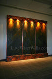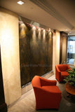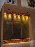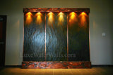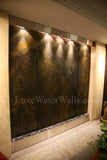 There are fountains and then there are walls of water. You can safely put this impressive wall fountain in the latter category. Three slabs of slate span 108 inches to help you cover an entire wall. And with a height of 96 inches, you get a well-proportioned design that makes a dramatic impression. Both the surface and the trim can be customized with your specifications. Our design experts are ready to help make your vision a reality, all we need is your imagination.
