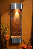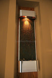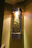 This elegant wall fountain has a slim, 16-inch wide profile that lets you bring a little serenity into a variety of spaces. Standard trim choices are stainless steel or three shades of copper (light, medium, or dark patina). The artist in you will appreciate the choice between three colors of slate for your surface. Of course, like all Luxe Water Wall fountains, you can choose to customize everything from the dimensions to the surface material. Capped sides accent the curved trim while keeping cords, hardware, or tubing out of sight – something that can’t be said for other fountains. This is another reason you can design this fountain into a small space.