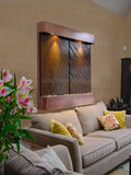 You can also choose between stainless steel and copper trim and three colored slate surface options to create just the right tone for every room. Both the trim and surface can be customized. If you need more design inspiration, you can check out our Custom Water Wall Gallery or speak to our customer service team. They’ll have more than enough ideas to help you get the perfect look for your home or office.